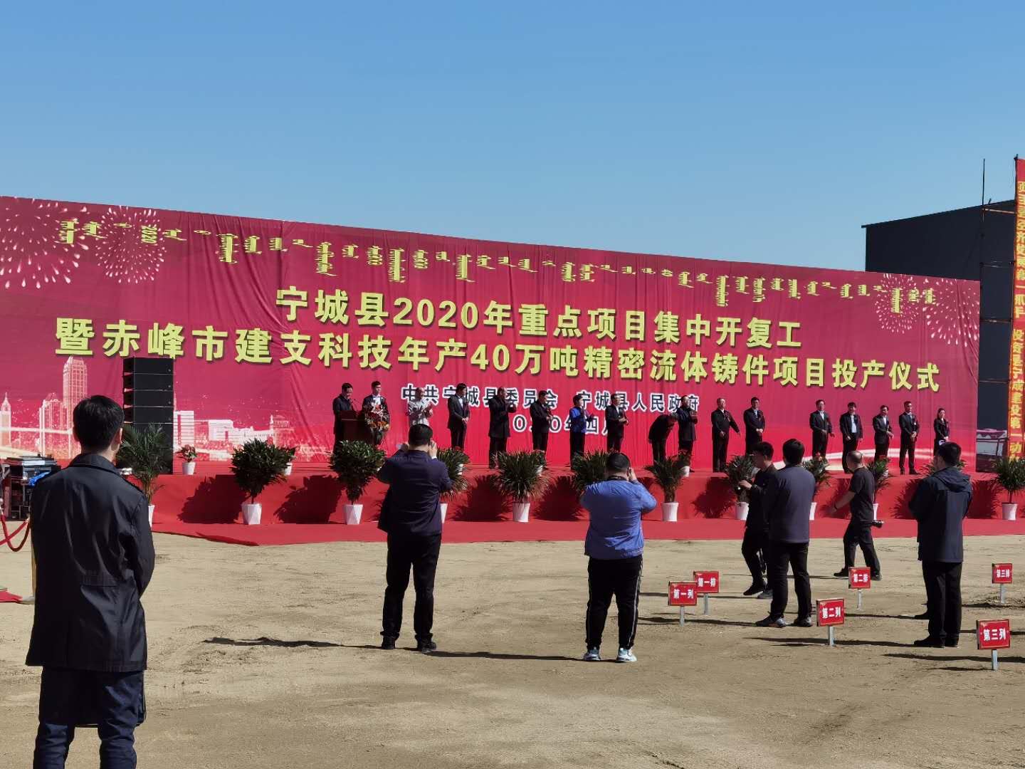 四月中京,万物复苏、大地飞歌,在这春暖花开的美好时节,4月13日,在建支科技公司厂区隆重举行了“宁城县2020年重点项目集中开复工暨赤峰市建支科技年产40万吨精密流体铸件项目投产“仪式。